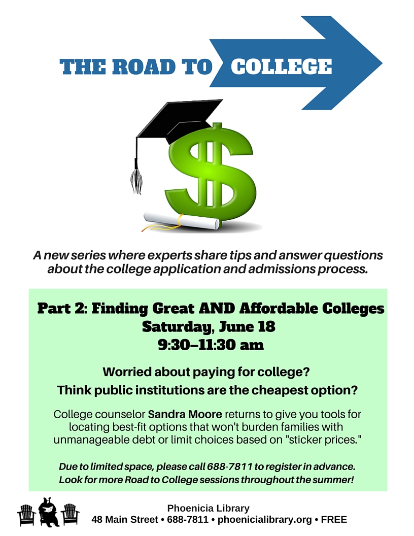 Saturday, 6/18, 9:30 am – 11:30 am: Road to College Series: Finding Great & Affordable Colleges